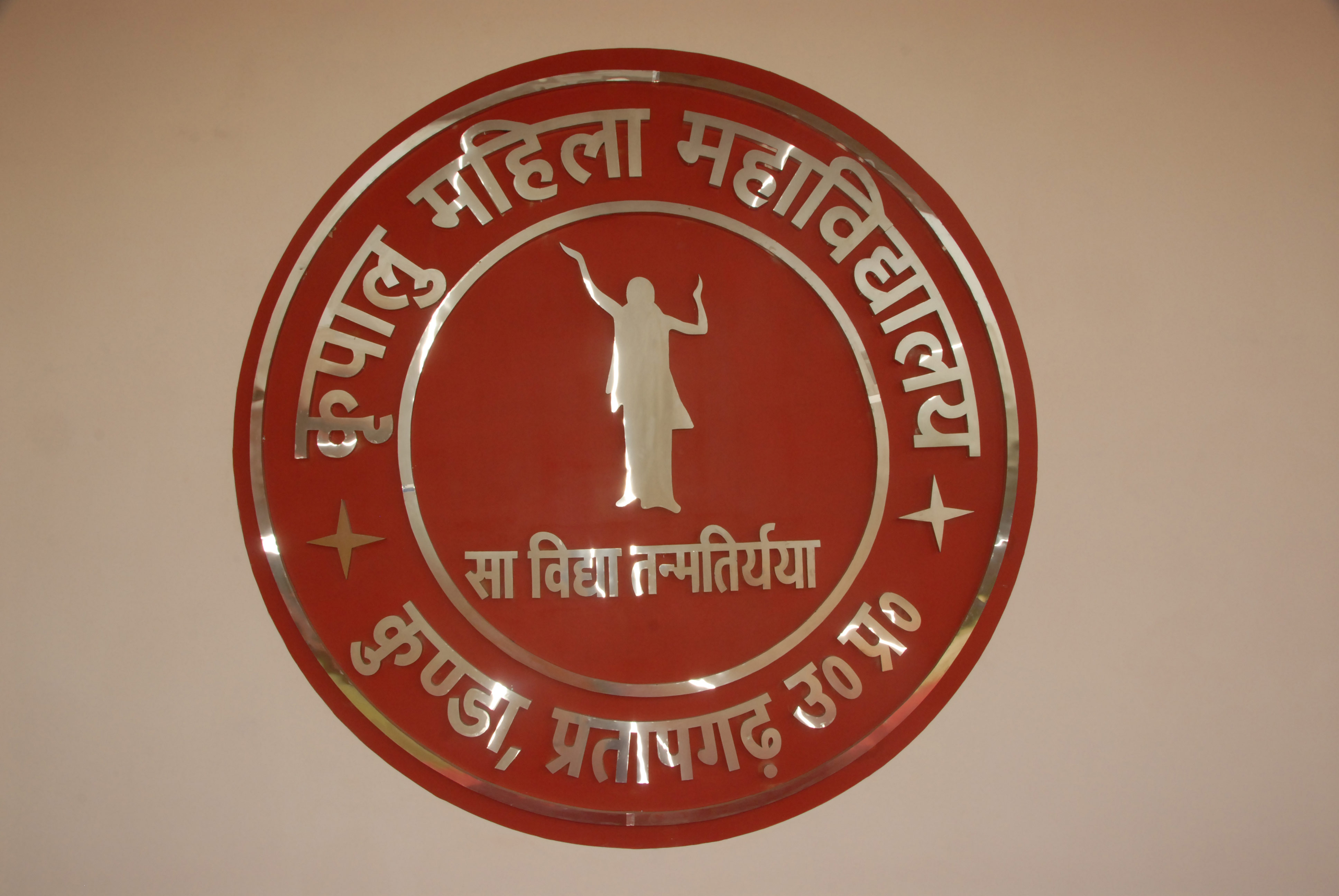 The Emblem of Kripalu Mahila Mahavidyalaya signifies ‘Jagadguru Shri Kripalu Ji Maharaj’, the founder of the Organisation. It reflects the profound importance and meaning of education as expressed in the Vedic scriptures. The words ‘Sa Vidya Tanmatiryaya’ encapsulate Jagadguru Shri Ji Maharaj's complete vision of true education.